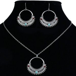 Ethnic Turquoise Necklace & Earrings Set Silver