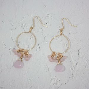 Pink Chalcedony and Jade Cluster Hoop Earrings