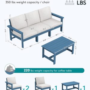 HDPE Patio Sofa Set, 4-Piece Sectional Outdoor Patio Furniture Set,