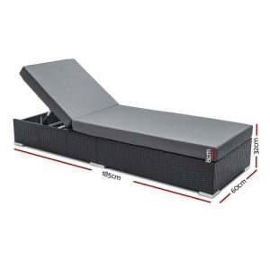 Gardeon 3PC Sun Lounge Wicker Lounger Outdoor Furniture Day Bed Rattan