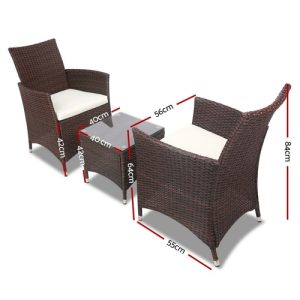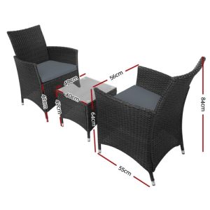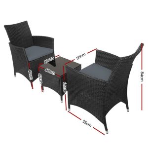 Gardeon 3PC Outdoor Bistro Set Patio Furniture Wicker Setting Chairs