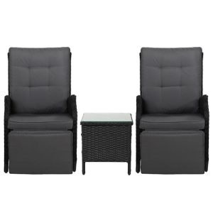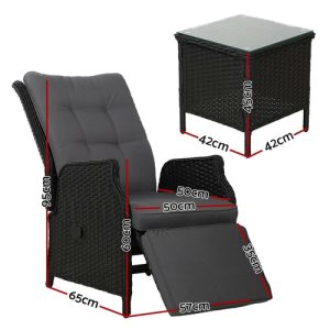 Gardeon 3PC Recliner Chairs Table Sun lounge Wicker Outdoor Furniture