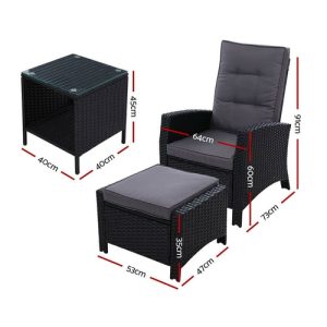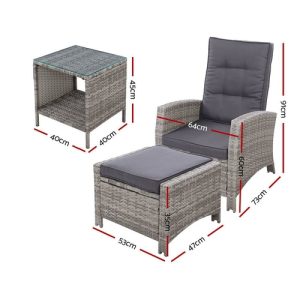 Gardeon 3PC Recliner Chairs Table Sun lounge Outdoor Furniture Wicker