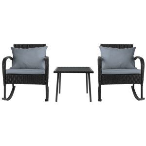 Gardeon 3PC Rocking Chair Table Wicker Outdoor Furniture Patio Bistro