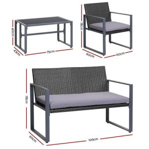 Gardeon 4 PCS Outdoor Sofa Set Rattan Furniture Glass Top Table Chairs