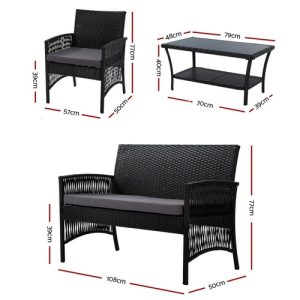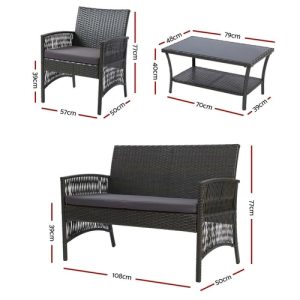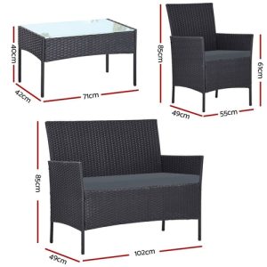 Gardeon 4 Seater Outdoor Sofa Set Wicker Setting Table Chair Furniture