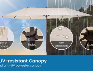 Outsunny 15′ Outdoor Patio Umbrella with Twin Canopy Sunshade Steel