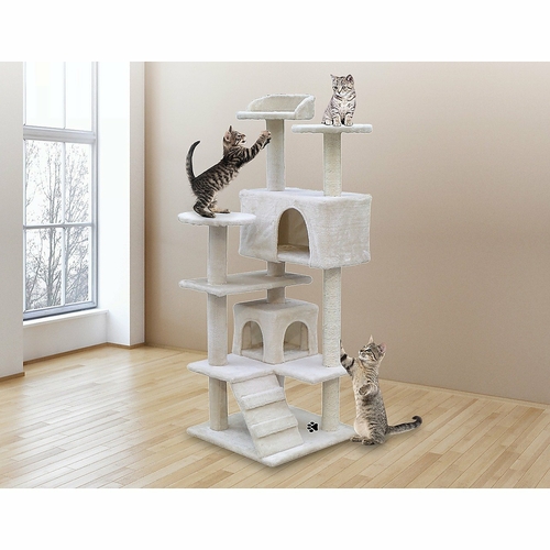 Give your cats the best gift you can give them – a place they can call their own. Indulge cats’ independent nature with their own kitty condo from Randy & Travis Machinery. With multiple levels of fun and relaxation, your cats will live large. Crafted from the finest natural fir, rugged sisal, and plush carpeting, this condo provides your cats with all the exercise they need, two private ‘rooms’ to get away from the hustle and bustle, and scratching posts to keep their claws sharp without damaging your furniture. Its neutral Beige and off-white colour palette complements practically any home décor.