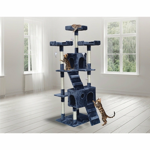 It’s large enough to accommodate multiple cats, yet it’s sturdy and durable – designed to last with thick boards and poles. Its neutral grey and off-white colour palette blends well with practically any home décor. Arched entrances to the two enclosed spaces add charm, while giving them a sense of security and a territory of their own. Unlike a lot of cat condos, this one is formaldehyde-free, so you’ll never have to worry about toxic fumes in your home. Both a palace and a playground for your cat, it gives your fabulous felines a space of their own. Order yours today!