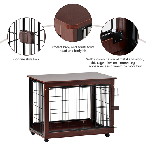 This elegant dog cage is manufactured with solid wooden structure and strong iron wire, and the sorrel color wooden frame represents rigor and graceful, and it will be a stable and durable pet furniture certainly. It would be a perfect choice for your dogs or cats. With classic design and multiple functions, this good-looking dog cage can be used as a end table or console in your living room or office. In order to ensure the smooth movements, this dog cage has four casters that with traditional style lock to meet different needs. The great load-bearing capacity of this pet cage allow the medium-sized dogs stay inside safely.