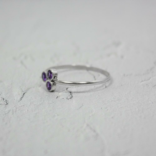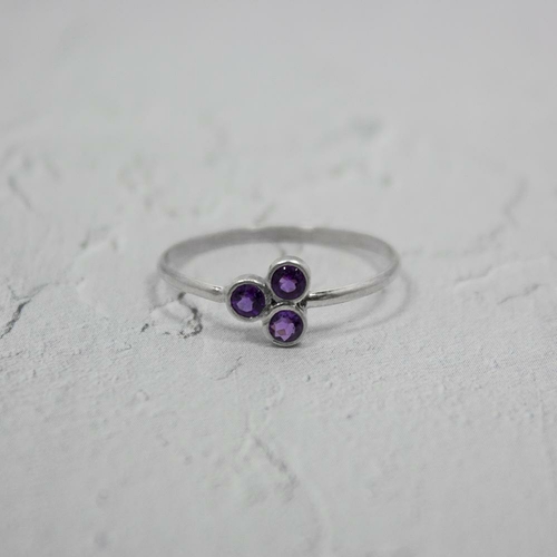 An absolute must-have ring for a ring stack. This dainty amethyst ring is fashionable and trendy. It can be worn alone to highlight the brilliant amethyst stones too.