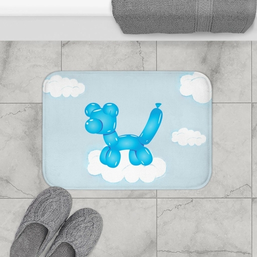 Balloon Dog on Clouds Bath Mat