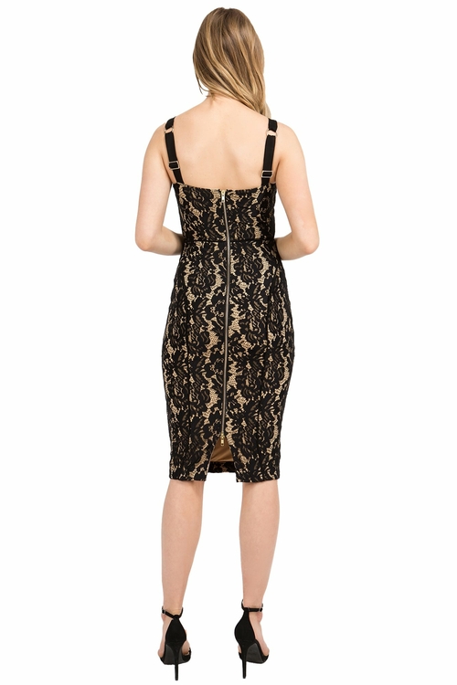Bianca Lace Bodycon Midi Dress – Back Gold Zipper Detail
