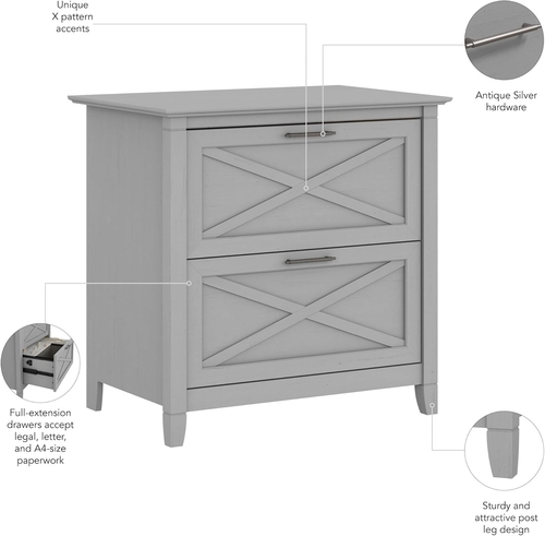 Upgrade your home office with the Coastal 2 Drawer Lateral File Cabinet in Gray, where style meets practicality. This cabinet not only provides ample storage but also elevates the overall aesthetic of your workspace. With its solid construction and durable laminate surface, it promises to be a reliable storage solution for years to come. Explore the full Key West Collection for coordinating furniture pieces that enhance your modern farmhouse style throughout your home.
