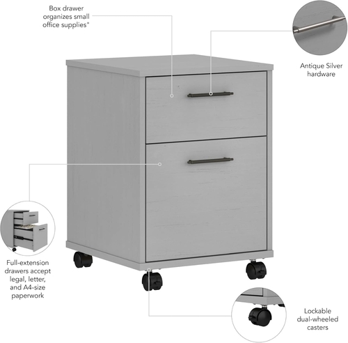 Bush Furniture Key West 2 Drawer Rolling File Cabinet in Cape Cod Gray