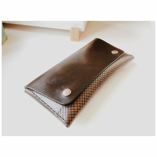 COAL is a rectangular clutch, made with vegetable-tanned leather. Two interior card pockets for cards. One inside pocket can easily fit a phone.