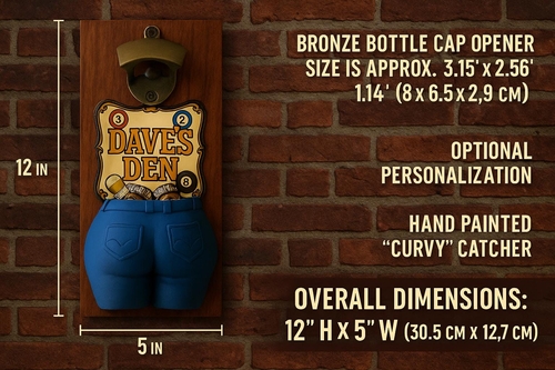 Bring a playful, rustic edge to your man cave, bar, patio, kitchen, or cabin with this Curvy Jeans Wall-Mounted Bottle Opener! Designed with a sculpted denim look, it’s the perfect way to pop your favorite drink with just one hand — no mess, no hassle. Caps are neatly caught inside the jeans opening for easy cleanup.