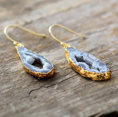 Enhance your style with our stunning handmade Druzy earrings, crafted from natural stones and available in both silver and gold finishes. Each earring features a unique, shimmering Druzy stone that captures light beautifully, adding a touch of elegance to any outfit. Druzy earrings are designed for those who appreciate fine craftsmanship and natural beauty. Shop our Druzy earrings today and experience the allure of natural stone elegance.