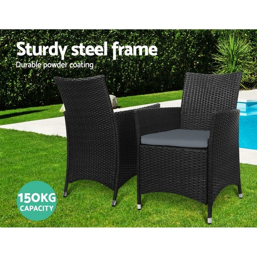Gardeon 3PC Bistro Set Outdoor Furniture Rattan Table Chairs Cushion
