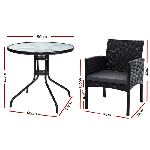 Gardeon 3PC Bistro Set Outdoor Furniture Rattan Table Chairs Cushion
