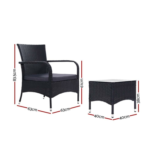 Gardeon 3PC Outdoor Bistro Set Patio Furniture Wicker Setting Chairs
