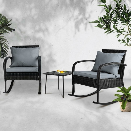 Gardeon 3 Piece Outdoor Chair Rocking Set – Black