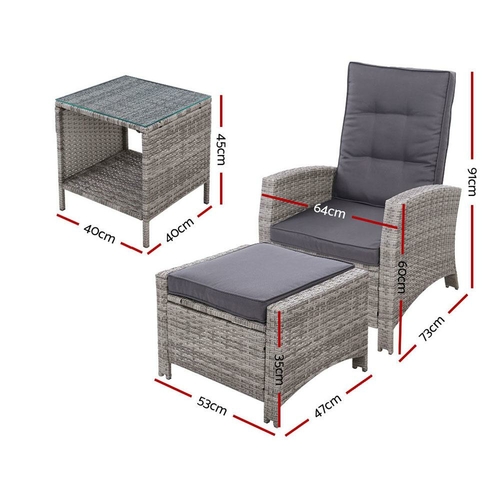 Now you can really sit back and chill in the outdoors with the Gardeon Outdoor Wicker Recliner Set. Comprising an oversized recliner and matching ottoman , the outdoor ensemble is everything you need for relaxation in elegant wicker style. The set is made of UV-resistant and weatherproof PE wicker so that you never have to worry about rust, corrosion or weathering issues. The heavy-duty steel frame, also wrapped in wocker, is sturdy and hardy and will stand up to robust use easily. More importantly, the recliner has five inclination settings, from 1100 to 1600, to suit your angle of rest. Better still, the seat cushion is made of high-density foam for ultra comfort while the zipped seat cover is removable and washable. Not least, the useful ottoman is just perfect for putting your feet up as you sip your latte or Bordeaux placed next to you on the tempered glass top side table. Yes, it is indeed paradise under the sun, moon and stars. Have it outdoors or indoors, the wicker recliner set is equally at home with its exquisite design and unique presence for any home decor enthusiast.