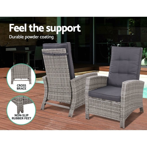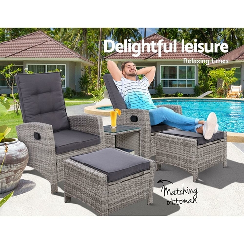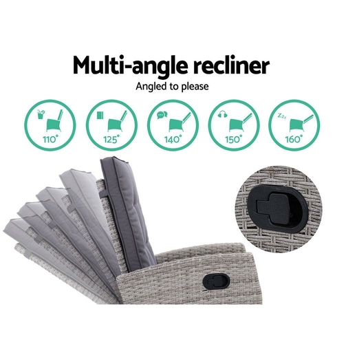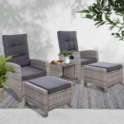 Gardeon 5PC Recliner Chairs Table Sun lounge Wicker Outdoor Furniture
