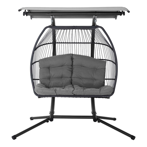 Otherwise known as the hanging egg chair, our Gardeon Double Hanging Pod Chair is the epitome of ultimate relaxation with a cool and exotic vibe. With its 100% hand-woven UV-resistant resin wicker, the pod chair is beautifully handcrafted and well hung on a steel pole for stability and strength. Plus, the adjustable canopy can be angled to suit your shading or completely removed for a wondrous tan. The powder-coated steel frame finish ensures that corrosion will never be an issue while the soft, fully-padded cushioned seat offers plush comfort for daydreamers and leisure seekers alike. Best of all, it seats two and has ample space for relaxation with a weight capacity of up to 200kg. Sit back with your loved one and turn an ordinary day into an extraordinary one. Hang cool people!