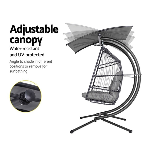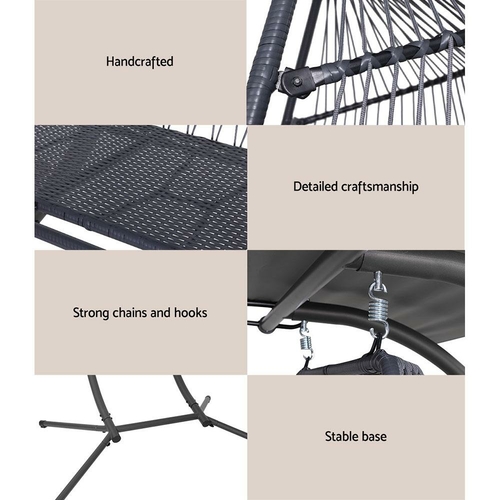 Gardeon Outdoor Egg Swing Chair Wicker Furniture Pod Stand Canopy 2