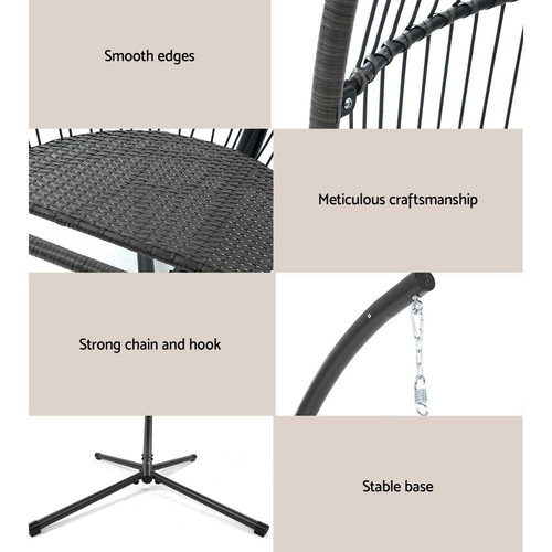 Otherwise known as the hanging egg chair, our Gardeon Hanging Pod Chair is the epitome of ultimate relaxation with a cool and exotic vibe. With its 100% hand-woven UV-resistant resin wicker, the pod is beautifully handcrafted and well hung on a steel pole for stability and strength. The powder-coated steel frame finish ensures that corrosion will never be an issue while the soft, inviting cushion offers plush comfort for day dreamers and leisure seekers alike. You can really take in the views with the chair as it can rotate 360°, or you can tie the chair to the pole with the included rope if you prefer more stability. Best of all, it has ample space for relaxation with a weight capacity of up to 150kg.