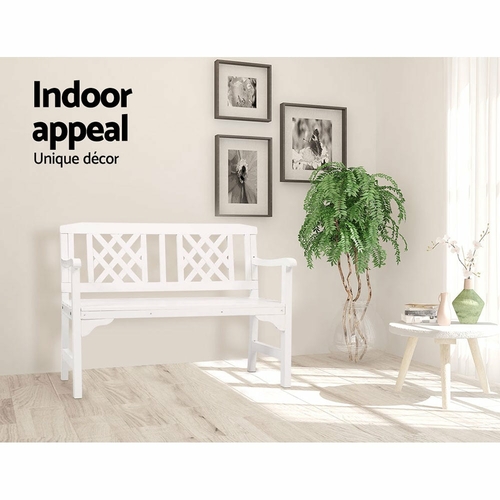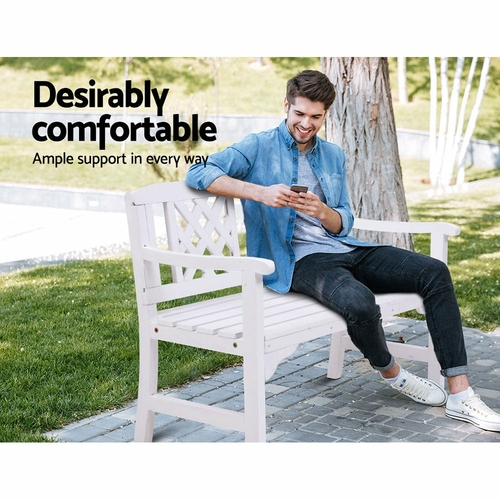 With its appealing rustic vibes, our Gardeon Garden Bench is perfect for outdoor or indoor use. The beautiful natural fir wood construction is meticulously handcrafted to bring out its finest qualities. The finishing is impeccable as is the classic design that will certainly stand the test of time and trends. The lattice-pattern backrest adds character to the bench while also providing sturdy support. With ample space to seat two, the bench features a strong inherent structure that can take weights of up to 250kg with minimum hassle. Not least, the bench is designed to ensure that your comfort is always forefront in its form and function.