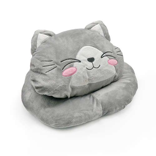 Glow in the dark Blanket, Moon Stars & Cat Neck Pillow-Gray