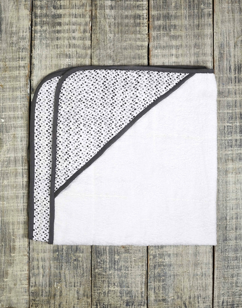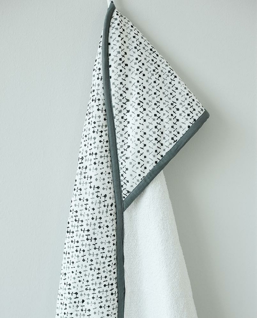 • Block-printed hooded towel (One side is made from cotton voile- the same super soft fabric as our bedding! And the other of plush cotton terry.)