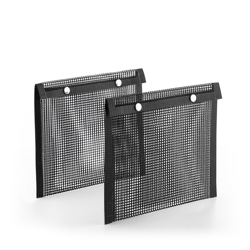 A set of 2 barbecue mesh bags, perfect for grilling vegetables and other small food items without them sticking or falling into the flames and burning. They are very practical and easy to use, you simply place the food in the bags and pit them on the barbecue grill (never directly onto the flames). The foods cook better and have a better flavour, since the smoke passes through the mesh. Simply turn the bags over to cook the other side. By being inside the bags, the foods don’t dispersed or fall into the fire while they are cooking, and once they are cooked they can be removed easily thanks to the non-stick material. The bags are alsoeasy to clean in the dishwasher. A more hygienic and effective way of cooking food on the barbecue.