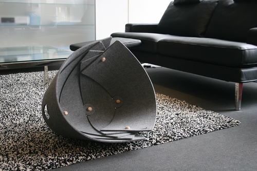 Dieses außergewöhnliche Designelement besteht aus fünf Filzteilen und hat eine Höhe von 25 cm und eine Breite von 41,7 cm.