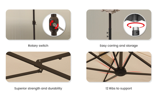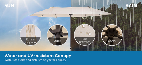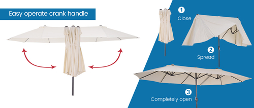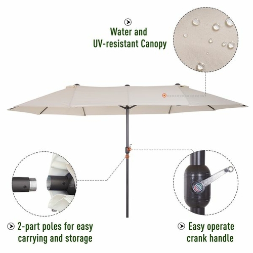 - ● 15ft long double-sided canopy umbrella keep shaded on any balcony, terrace, garden market or others