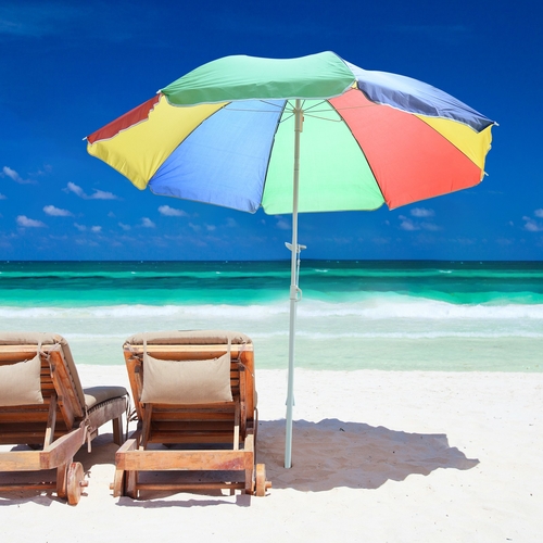 Outsunny 5ft Round Beach Umbrella Outdoor UV Protection Sun Shade Canopy w/ Push Button Tilt Pole Rainbow