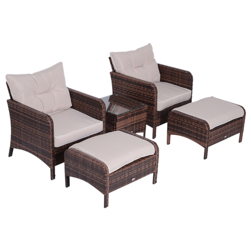 Outsunny 5pcs Outdoor Patio Furniture Set Wicker Conversation Set Footrest Coffee Table