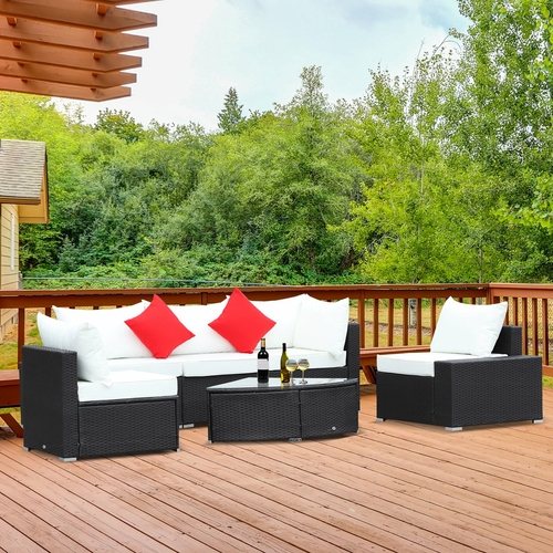 Outsunny 6 Piece Outdoor Wicker Furniture Set Patio Cushioned Rattan Sofa Chiars Table