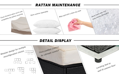 - ● Waterproof and UV resistant PE rattan, won’t fade