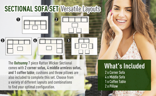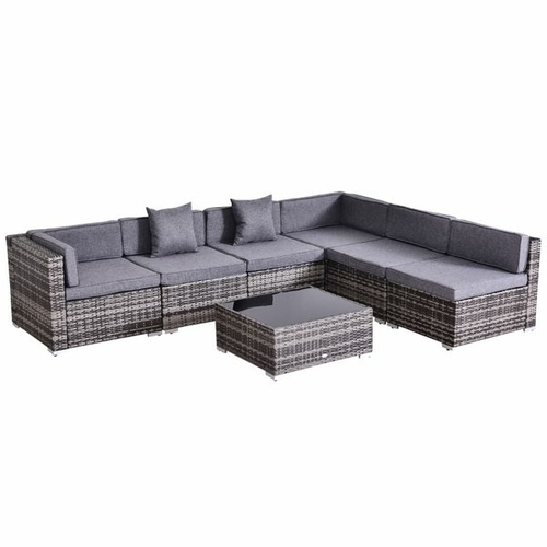 Outsunny 7pc Rattan Furniture Set w/ Side Table Lounge Sofa Cushion