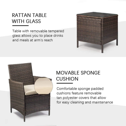 - Versatile Applications: Ideal for patios, porches, backyards, balconies, poolside areas, gardens, and more, this furniture set is perfect for both indoor and outdoor use.