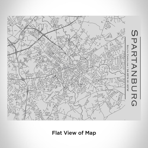 Custom engraved map of Spartanburg, South Carolina and coordinates on 20oz double walled insulated stainless steel bottle with bamboo top. Measurement – 4in x 4in x 12in.