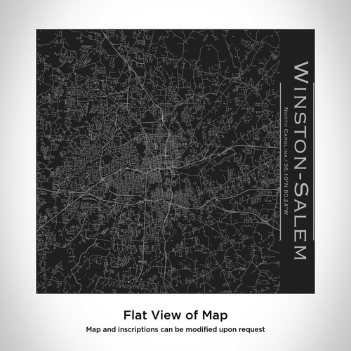Custom engraved map of Winston-Salem, North Carolina and coordinates on 17oz double walled insulated stainless steel coffee tumbler in matte black. Map and inscription can be further customized. Weight – 0.8lbs. Measurement – 4in x 4in x 9in.