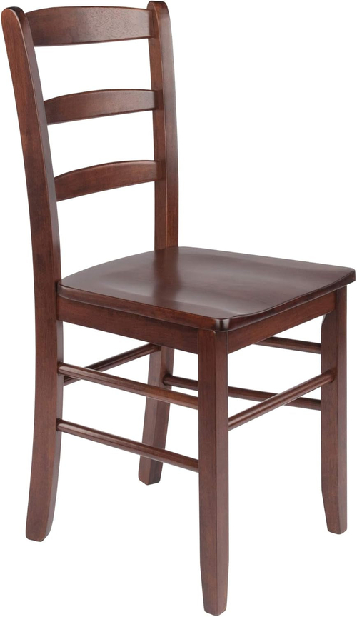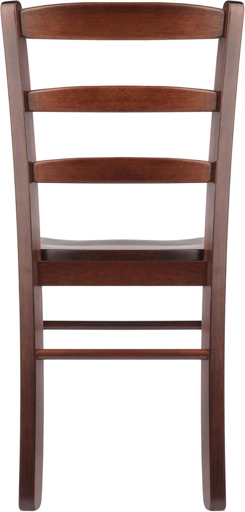 Enhance your space with the Elegant Walnut Ladder-Back Dining Chair Set, where elegance meets functionality.